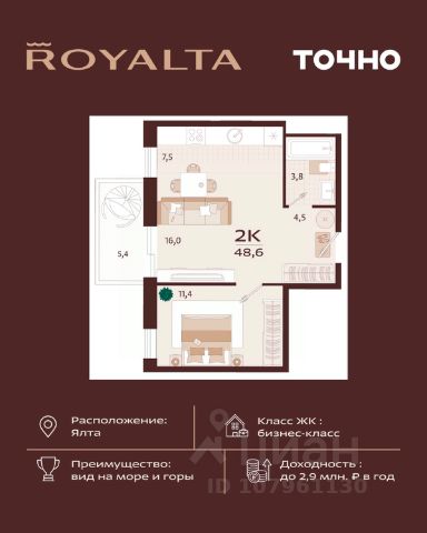 • ✓ В базе Циан 1 квартир на 7 этаже в поселке городского типа Никита республики Крым