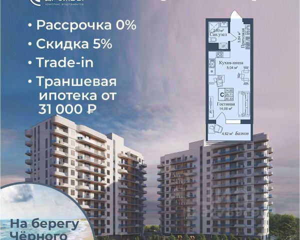 АКЦИИ: * Ипотека от 40 000 руб. в месяц * Рассрочка 0% до 2028г. * Бронь на 30 дней * 5 мин до моря пешком, планировки от 30 кв.м. * Высота потолков 3 м , предчистовая и чистовая отделка * Доходность инвестиций от 40% годовых. * Сдача в аренду от управляющей компании (доверительное управление) позволяет получать доход от сдачи апартаментов без вашего участия * Безопасная сделка по ФЗ-214/эскроу-счёта "Аллея Дружбы" — это комплекс апартаментов бизнес-класса в Евпатории, расположенный в 5 минутах прогулки от золотистых пляжей Чёрного моря. Два современных 12-этажных корпуса с панорамными видами на море объединены стильным стилобатом с центральным входом и бутиковыми retail-площадями, а закрытая территория и подземный паркинг обеспечивает приватность и безопасность. АРХИТЕКТУРА И КОНСТРУКТИВНЫЕ ОСОБЕННОСТИ: • 12-этажное здание в авторском архитектурном стиле • Высота потолков (от 2,9 м до 3,1 м) • Эксклюзивное решение для первых этажей (высота потолков 3,4м) • Евро планировки с террасами и гардеробными • Панорамное ламинированное остекление • Индивидуальные келлеры • Видовые лоты на море • Высокоскоростные лифты по концепции 5* отеля • Предусмотрено резервное электроснабжение • По проекту предусмотрено место для кондиционера и практическое решение для маскировки коммуникаций ЛОКАЦИЯ И ОКРУЖЕНИЕ: • До центра Евпатории - 7 минут на машине • Пляж - всего 5 минут пешком • Рядом с комплексом развитая инфраструктура (рестораны, магазины, кафе, медицинские учреждения, санатории) ГОСТЕПРИИМСТВО И БЕЗУПРЕЧНЫЕ СЕРВИСЫ: • Управляющая компания премиум-класса • Консъерж-сервис 24/7 • Доставки продуктов и готовой еды • Зона ресепшн оформлена в стилистике комплекса • Лобби с атмосферным кафе и зонами для чтения • Премиальное решение для мест общего пользования • Интерактивная детская комната для самых маленьких • Пункты выдачи товаров от маркетплейсов • Гостевые парковочные места • Организовано место для хранения колясок ваших малышей • Ремонт на выбор "Комфорт-формат" и "Гранд-формат" БЕЗОПАСНОСТЬ И ТЕХНОЛОГИИ СПОКОЙСТВИЯ: • Закрытая территория, двор без машин • Система контроля доступа (строго по электронным пропускам) • Подземный паркинг с тремя типами машиномест • Выделенные места для велосипедов • Камеры видеонаблюдения • Круглосуточный ресепшн • Телеметрия - автоматический сбор и передача данных с приборов учета апартамента минимизирует ошибки и мошенничество • Система умного апартамента с дистанционным управлением БЛАГОУСТРОЙСТВО ТЕРРИТОРИИ: • Ландшафтный дизайн по проекту (2 334 м² озеленения) • Прогулочные аллеи и зоны отдыха для расслабления и медитации • Коворкинг-зоны с высокоскоростным Wi-Fi для бизнес-переговоров • Детские и спортивные площадки • В апарт-комплексе вас ждут мини-маркет и магазин повседневных товаров • Специальное пространство для курения • Выделенная площадка для игры в волейбол и баскетбол РЕЛАКС И ДОСУГ: • На территории комплекса 2 отдельных бассейна: летний бассейн с выделенной зоной для детей и крытый те