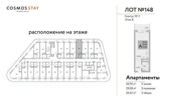 Пентхаус находится последнем этаже 8-этажного дома, площадью 132,5 м², плюс открытая терраса 174 м² с панорамным видом на море, горы, старинный Гурзуф, знаменитую гору Аю-даг, а также на скалы Адалары.