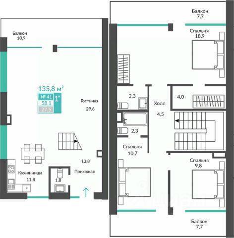 Авторское планировочное решение, грамотно продуманно и максимально функционально, площадь позволяет сделать 2 комнаты, 1 спальню, 1 санузел, 1 просторную террасу с 3 индивидуальными выходами из каждой комнаты, всё это позволяет создать апартамент вашей мечты.