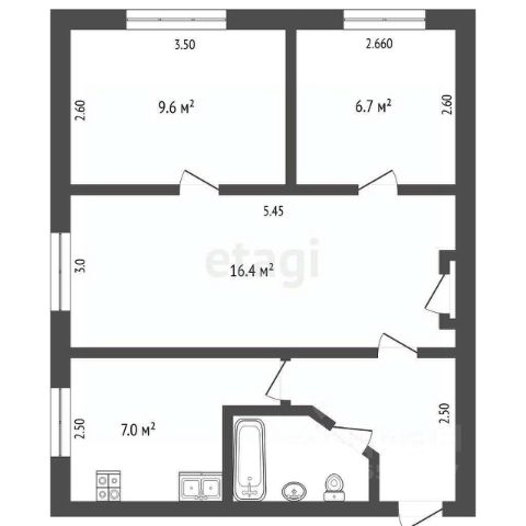 Продуманная планировка: просторная кухня для семейных завтраков, две отдельные комнаты, аккуратный санузел.