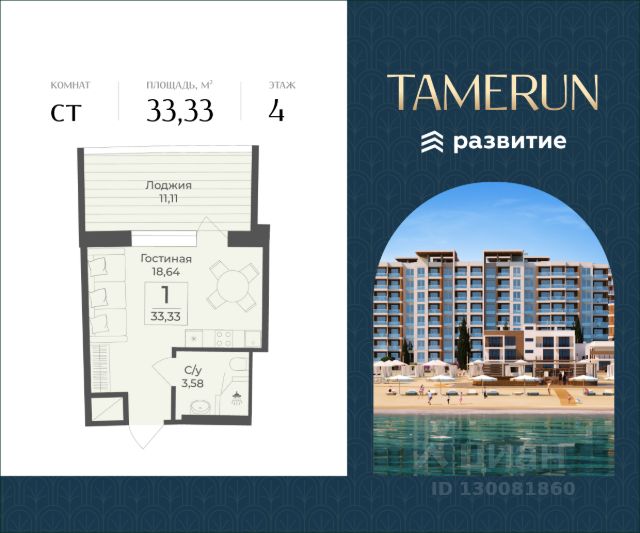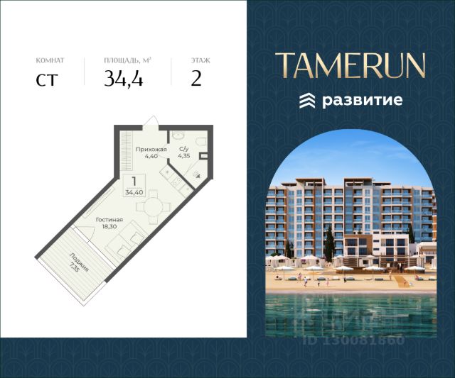 "Tamerun" - морская резиденция на Западном берегу Крыма, между городами Евпатория и Саки. Резиденция "Tamerun" представляет собой современный комплекс из четырёх корпусов высотой 9 и 12 этажей, гармонично вписанных в живописный ландшафт. Интерьеры выполнены в изысканном элегантном стиле с применением премиальных материалов — натурального мрамора, ценных пород дерева и высококачественной кожи. Просторные помещения наполнены естественным светом благодаря большим панорамным окнам, открывающим завораживающие виды на Черное море. Атмосфера резиденции пропитана уютом и гармонией, создавая идеальные условия для комфортной жизни и отдыха. Рядом с "Tamerun" находится Сасыкский заказник и самое крупное в Крыму солёное розовое озеро Сасык-Сиваш. На территории резиденции находится открытый бассейн с подогревом, окружённый шезлонгами и зоной отдыха, где можно наслаждаться теплыми лучами солнца и свежим морским бризом. Для любителей активного отдыха предусмотрен теннисный корт и фитнес-зал, оборудованный новейшими тренажёрами. В солнечной резиденции есть всё для жизни и интересного отдыха: собственный песчаный пляж и теннисный корт, бассейны с морской водой, рестораны и летнее кафе, зона СПА и фитнес-центр, общественно-деловые пространства и подземный паркинг. Профессиональная сервисная компания с международным опытом возьмёт на себя все операционные вопросы по управлению и эксплуатации, обеспечивая 5-звёздочный уровень обслуживания.
