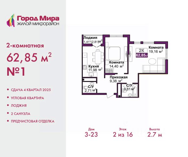 Торопитесь забронировать на этих условиях! Предложение ограничено! Стоимость квартиры указана со скидкой, ваша экономия составит 934,200 RUB. По всем вопросам звоните в офис продаж, наши менеджеры вам все расскажут! Двухкомнатная квартира с предчистовой отделкой в ЖМ "Город Мира" на 9 этаже. Общая площадь: 59.95 кв.м., жилая: 27.42 кв.м., площадь просторной кухни-столовой: 12.63 кв.м. Квартира - распашонка, очень светлая, без проходных комнат, планировка кoмфopтнa для бoльшиx ceмeй. В квартире один балкон, один совмещенный и один раздельный санузел. Высота потолков 2.7 м. Жилой комплекс "Город Мира" комфорт и гармония в современном формате. "Город Мира" это масштабный жилой комплекс, созданный для тех, кто ценит комфорт, безопасность и гармонию с природой. Здесь продумана каждая деталь от удобной инфраструктуры до эргономичных планировок квартир. В 2024 году микрорайон "Город Мира" победил в номинации "Лучший экологический проект года в сфере строительства" по версии премии Crimea Urban Awards. Ключевые преимущества комплекса: - удачное расположение зеленый район с благоприятным микроклиматом - продуманное зонирование жилые кварталы, зоны отдыха и коммерческие объекты - комфорт-класс высокое качество строительства и современные инженерные решения Инфраструктура "Города Мира": Образование и досуг: - 2 детских сада (по 260 мест каждый) - планируется строительство общеобразовательной школы - детские и спортивные площадки в каждом дворе - беседки для отдыха, зоны для выгула собак Ритейл и сервис: - магазины, аптеки, медицинские центры - фитнес-клубы, салоны красоты - детские развивающие центры Парковки: - гостевые парковки - наземные и подземные паркинги Квартиры с продуманным комфортом: - просторные планировки с кладовыми и колясочными - автономное отопление (по 23 дому: индивидуальное отопление) - выполнена стяжка пола (по 3, 4, 20, 21 ,22 домам: выполненная стяжка пола и штукатурка стен) - Консьерж-сервис для дополнительного удобства Благоустройство территории: - ландшафтный дизайн с зонами отдыха - современные детские площадки - стильные холлы с дизайнерской отделкой - система видеонаблюдения для безопасности "Город Мира" это место, где созданы все условия для комфортной жизни. Выбирайте качество и продуманность в каждой детали! Квартира находится в корпусе 3_20. Дом монолитный, одноподъездный, высотой 9 этажей. В подъезде 1 грузовой лифт. Окончание строительства - 4 квартал 2025 года. Оформление сделки по договору долевого участия. #ZSDDev Продается квартира в ипотеку в районе Центральный в городе Симферополь.