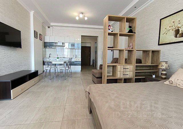Арт. 110082670 Предлагается возможность купить студию с прекрасными видами на морское побережье, расположенную в живописном пригороде Ялты —поселке Отрадное в жилом комплексе "Никитский дворец". Студия (41 м²) расположена на 5 этаже 12-этажного здания. Ключевыми преимуществами квартиры являются — дизайнерская отделка и полная готовность к проживанию, терраса с шикарными панорамными видами, а также расположение в престижном комплексе. Планировка: +прихожая, +кухня-гостиная со спальной зоной и выходом на террасу, +совмещенный санузел с душевой, +терраса. В студии выполнен стильный дизайнерский ремонт с использованием высококачественных материалов. Пространство полностью укомплектовано современной мебелью и бытовой техникой, что обеспечивает высокий уровень комфорта и делает проживание здесь удобным и приятным в любое время года. Жилой комплекс "Никитский дворец" представляет собой современное 12-этажное здание со своей инфраструктурой, расположенное в живописной локации Южного берега Крыма. Близость великолепного Никитского ботанического сада делает жизнь в комплексе "Никитский дворец" совершенно особенным опытом единения с природой и историей. Инфраструктура комплекса включает: +Просторную благоустроенную территорию для прогулок и отдыха; +Круглосуточную охрану и систему контроля доступа; +Продуктовый магазин; +Обустроенный пляж — для комфортного отдыха у моря; +Современные детские площадки — безопасное и интересное пространство для детей; +В перспективе — СПА-центр с бассейном и ресторан с баром на набережной. Расположение: +До моря и благоустроенного пляжа - 7 минут пешей прогулки через живописный парк; +До центра Ялты — всего 25 минут на автомобиле; +До ближайшего пляжа — всего 5 минут езды; Удобная локация сочетает тишину и уединение с быстрым доступом к курортной и городской инфраструктуре. К квартире идет парковочное место в паркинге, которое можете приобрести за отдельную плату. Заинтересовала квартира? Документы готовы к сделке. Звоните! Мы ответим на все интересующие вопросы и организуем просмотр.