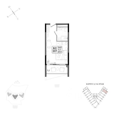 Продаётся студия-апартаменты в строящемся доме (Корпус 1), срок сдачи: IV-кв. 2027, общей площадью 38.5 кв.м., на 9 этаже.
