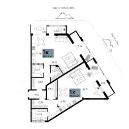 Есть еще предложение на 2 лота на этом же этаже. Один площадью 45 м2, стоимость 26 млн. Второй 32 м2, стоимостью 19,9 млн. рублей.