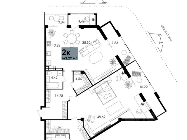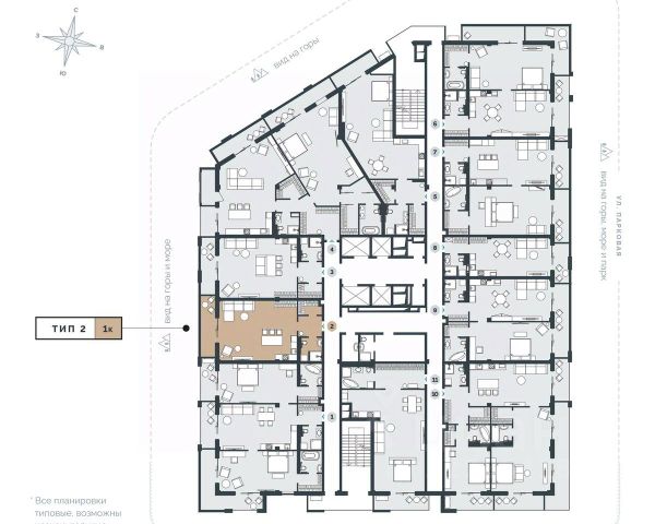 Эксклюзивный видовой апартамент с панорамным остеклением в резиденции премиум-класса PARK PLAZA площадью 77 м2 с двум огромными балконами - для тех, кто ценит виды, простор, удобство, безопасность и исцеляющий воздух субтропиков.