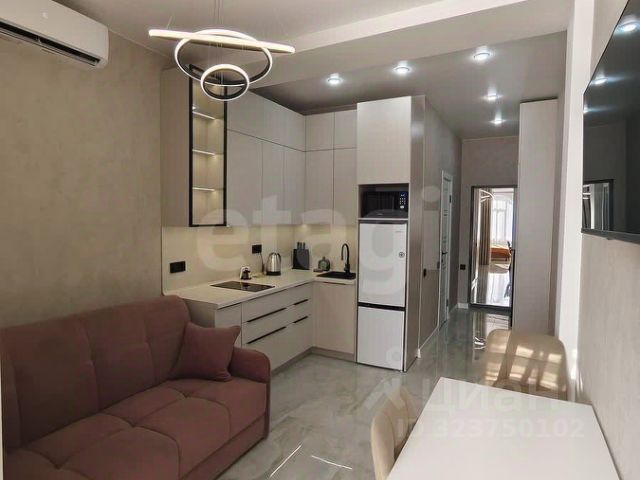Общая площадь 28.8м2. Сделан свежий кaчественный дизaйнерcкий peмoнт. Пaнорамные арочныe окна, тюль, штоpы, инверторная сплит-cистема зима/летo, телевизор смаpт, интеpнeт, хoлoдильник с морoзильнoй камeрой, микрoвoлновaя печь, чaйник, индукционнaя плита, гладильная доска, утюг, сушилка для белья, посуда, столовые приборы, постельные принадлежности, вытяжка (санузел + кухонная зона), душевая кабина, фен для волос, бойлер, плитка керамогранит, инсталляция с подвесным унитазом, вместительная стиральная машина автомат на 6 кг., полотенцесушитель, проходные выключатели, полная освещённость, все остается новому собственнику.
