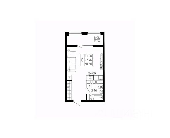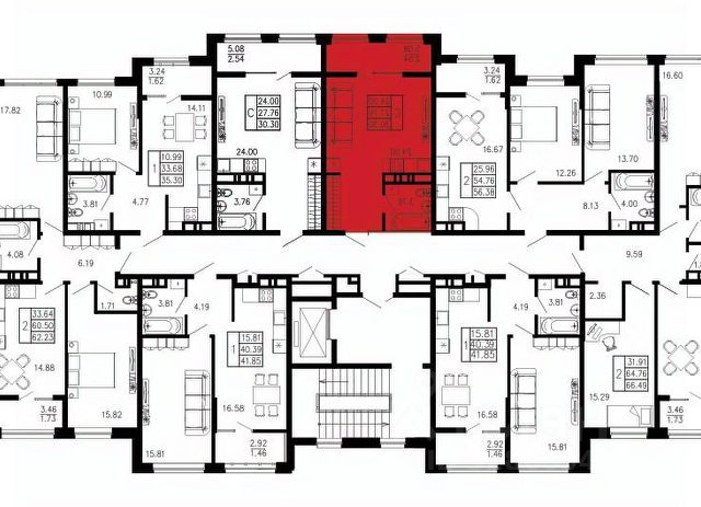 На рынке SkySoul основной объем — это студии по 2832 м².