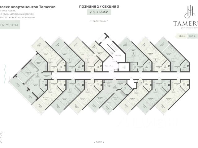 Апартаменты находятся в секции N 1, корпус 2, на 7 этаже комплекса 5* resort&sрa Tamerun на первой береговой линии.