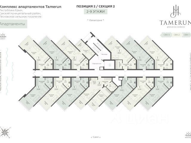 Тамерун - дом у моря для тех, кто мечтает о тишине, окружении парков и воды. На приватной территории с собственным пляжем расположены видовые апартаменты, бассейны, спа, рестораны и эстетичные сады. Персонализированный сервис здесь исполняет пожелания, создавая атмосферу пятизвездочного отеля у вас дома. Резиденция сочетает преимущества мягкого климата, близость к городам Саки и Евпатория и доступ к целебным источникам. Это пространство вдали от туристического шума идеально для круглогодичного комфортного проживания и здорового образа жизни. Расположение Пешком: - 3 минуты до приватного пляжа у Черного моря; - 15 минут до Ж/Д станции "Техникум"; - 25 минут до пирса у озера Сасык-Сиваш; На автомобиле: - 5 мин. до Симферопольского шоссе; - 10 мин. до города Саки; - 20 мин. до Евпатории; - 45 мин. до аэропорта имени И. К. Айвазовского; - 60 мин. до Ж/Д вокзала Симферополя. Инфраструктура для детей и взрослых - Эксклюзивный клубный пляж; - Виндсерфинг, дайвинг, катание на лодках и другие виды водного спорта; - Спортивный корт для тенниса, футбола и волейбола; - Приватная парковая территория; - Оздоровительный спа-комплекс; - 2 открытых и 1 закрытый бассейны с морской водой; - Банный комплекс с купелями, хамамом, снежной и соляной комнатами; - Развлекательный центр; - Детский клуб с кинотеатром; - Батуты, лабиринты и скалодромы для подростков; - Конференц-зал на 50 человек и переговорные кабинеты; - Бильярдный клуб; - Фитнес-центр с новейшими тренажерами; - Торговая галерея прямо в доме; - Летнее кафе, 3 ресторана и супермаркет; - Гранд-лобби в главном корпусе; - Просторные входные группы с колясочными и велосипедными; - Подземный паркинг на 188 машино-мест с автомойкой; - Наземная гостевая парковка на 259 машино-мест; - Видеонаблюдение, охрана, вход только по пропускам. Живописный ландшафт - Всесезонный сад: зеленый и цветущий двор круглый год; - Более 100 растений в приватном саду; - Амфитеатр на свежем морском воздухе; - Лаунж-зоны и прогулочные дорожки; - Крупнейшее в Крыму соленое розовое озеро Сасык-Сиваш и Сасыкский заказник; - Песчаные пляжи протяженностью 150 метров; - Главная мечеть Евпатории Джума-Джами, Собор Николая Чудотворца, Комплекс Караимских кенас в непосредственной близости. Проект для инвестиций - Федеральный девелопер, входящий в ТОП-20 застройщиков России; - Профессиональный отельный оператор; - Консьерж-сервис 24/7: бронирование, аренда, клининг, доставка; - Для инвесторов полное делегирование обслуживания апартаментов; - Пассивный доход от 1,5 млн руб. в год; - Потенциал роста стоимости 35% в год; - Срок окупаемости при сдаче в аренду 5-6 лет; - Востребованность весь год (на 70% в среднем заселен комплекс)."