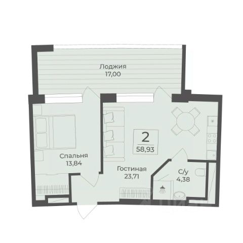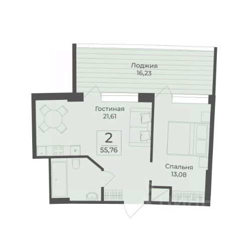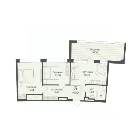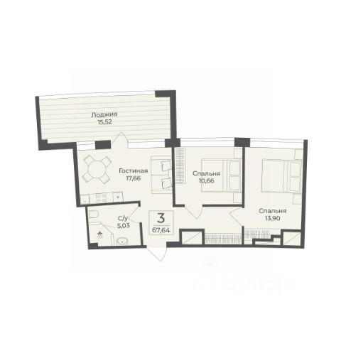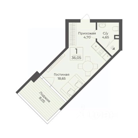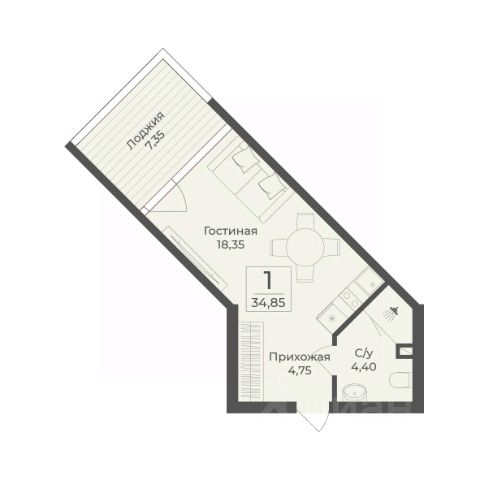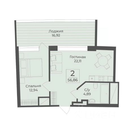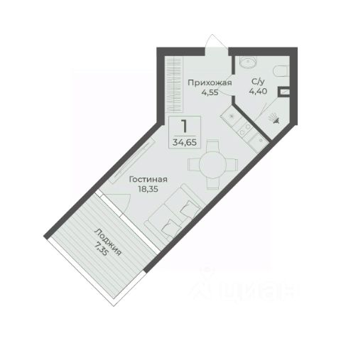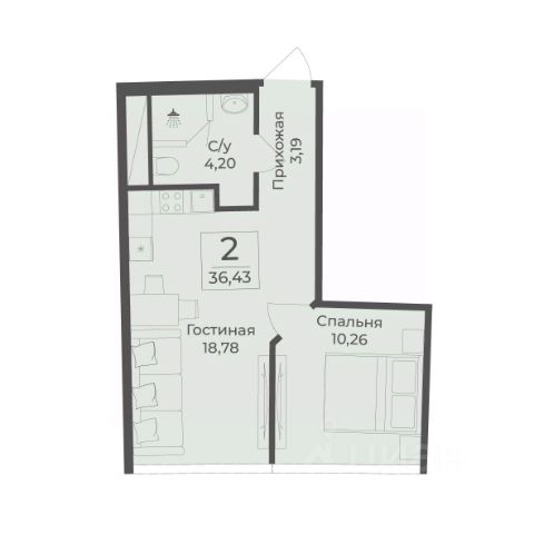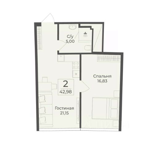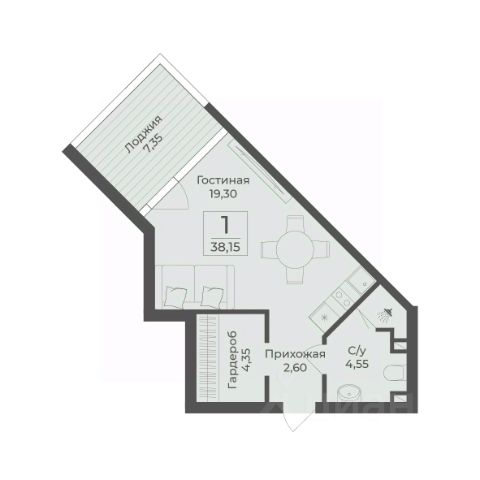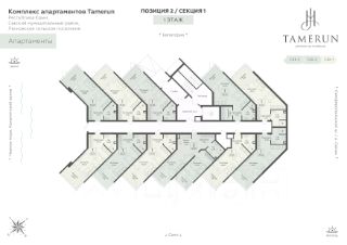 В строящемся апарт-комплексе TAMERUN продаются апартаменты, которые состоят из кухни-гостиной 17,1 м2, спальни 16,1 м2, санузла 4,9 м2, гардеробная 2,8 м2, прихожая 2,8 м2. Общая площадь 43,7 м2.