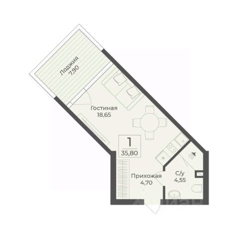 лоджия 7.35 кв.м,
