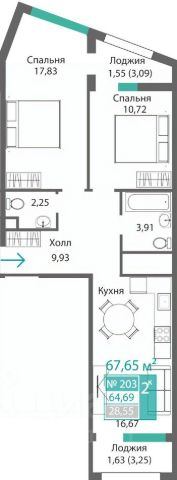 Каждая деталь продумана для вашего удобства: три изолированные комнаты  просторные спальни 13,6 м² и 11,5 м² идеально подходят для отдыха, детской комнаты или рабочего кабинета, уютная гостиная 17,2 м² станет местом для семейных встреч и теплых вечеров. Кухня площадью 9,7 м² вдохновляет на кулинарные шедевры, два балкона на 3,4 м² подарят дополнительное пространство с видом на город. Раздельный санузел 3,9 м² , 4,1  м² и 2,1 м² обеспечат практичность в быту.