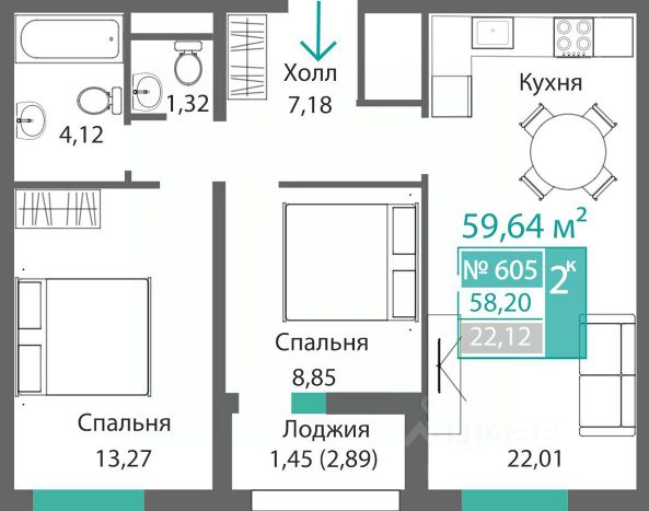 Продаётся 2-комнатная квартира в строящемся доме (Этап 4 (Секции А2, Ж2, Г4, В2, Г3)), срок сдачи: II-кв. 2028, общей площадью 59.84 кв.м., на 9 этаже. Новый жилой комплекс "Подсолнух" от застройщика "Монолит" расположен по адресу: Республика Крым, г. Симферополь, ул. Святителя Гурия