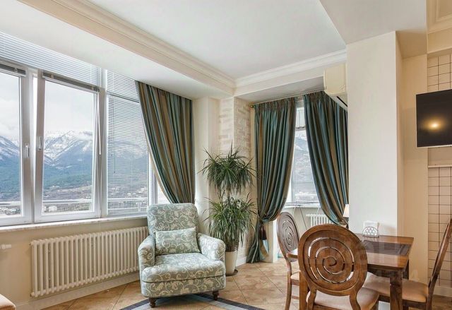 Арт. 64302769 Предлагается к покупке просторная квартира с новым стильным ремонтом площадью 72 кв.м. Квартира расположена на 9-м этаже 10-ти этажного дома. Укомплектована необходимой бытовой техникой и мебелью от ведущих производителей Германии, Италии. Выполнен качественный ремонт из дорогостоящих материалов по дизайн-проекту. Установлен двухконтурный газовый котел, в холодных зонах выполнена разводка системы теплый пол. Планировка: изолированная спальня (15,5 м2); гостиная с кухонной зоной (43 м2); коридор (9,8 м2); гардеробная комната (3,4 м2); совмещенный санузел с ванной (5,4 м2). ПАРКИНГ ВХОДИТ В СТОИМОСТЬ КВАРТИРЫ! С окон квартиры открывается бесподобный вид на горы, Ялту и немного море. В доме есть консьерж и закрытый охраняемый паркинг. Удачное расположение позволяет добраться до центра и Набережной всего за 15 мин пешим шагом, либо 5 мин на авто. В 300 м выезд на Южнобережное шоссе. Удобный для жизни и отдыха район: около дома остановка маршрутных такси, продуктовые магазины, супермаркет, почтовое отделение, школа и детский сад. Обслуживание в месяц 23 рубля за м2 плюс расходы по счетчикам.