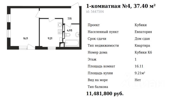 * Жилая зона 15,11 м²: Вместительная, светлая, без внутренней отделки. Большие окна наполняют квартиру солнечным светом и свежим морским бризом! .