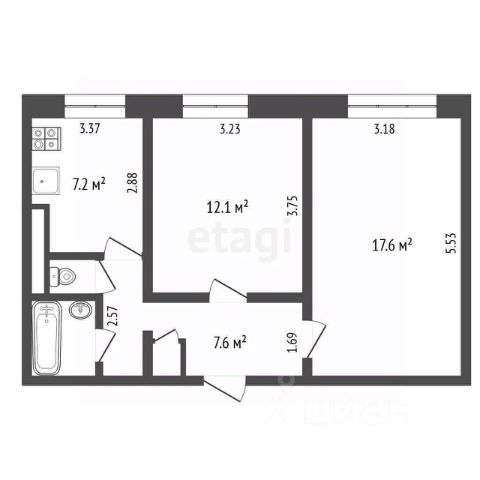 Планировка квартиры улучшенная, кухня - 8 кв. м., комната - 18 кв. м., лоджия - 4 кв. м., с/у - 3 кв. м.