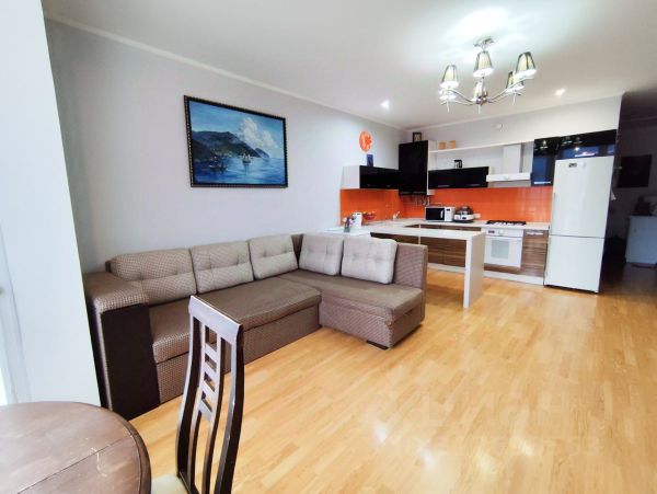 Просторная однокомнатная квартира с изолированной спальней, окна квартиры выходят на могущественные горы и вечнозелёный Ялтинский лес. Квартира видовая, расположена на 11 этаже жилого комплекса "Бакунинский".