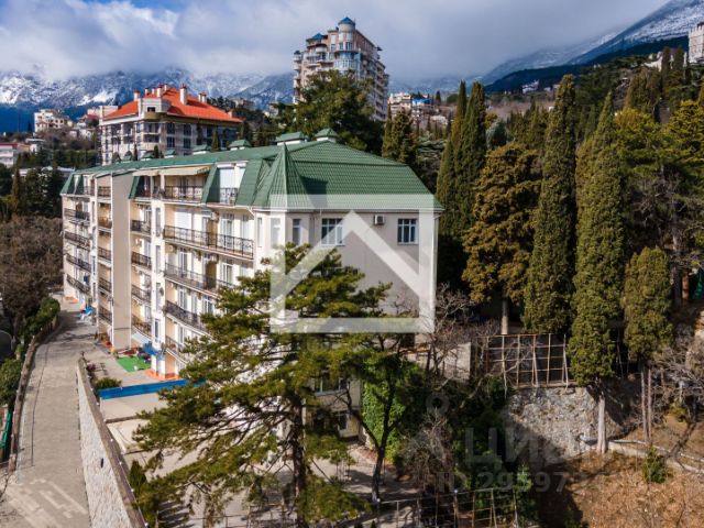 Пентхаус расположен на верхнем девятом этаже здания и имеет террасы с видом на лазурное море и гору Ай-Петри.