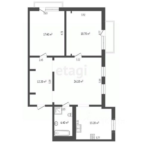 Общая площадь - 84,4кв.м с учетом лоджии площадью 14,1квм