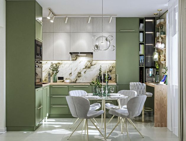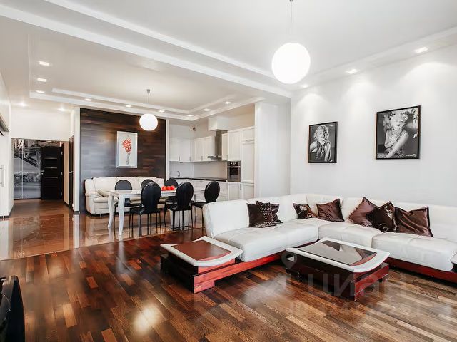 -функционально разделенное пространство на несколько зон: кухня, столовая, гостиная, спальня,