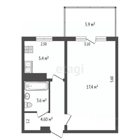 Квартира расположена на 3м этаже в 5этажном кирпичномонолитном доме. Общая площадь: 36,3 м2. Жилая комната — 17,4 м2, кухня — 5,4 м2, совмещённый санузел,
