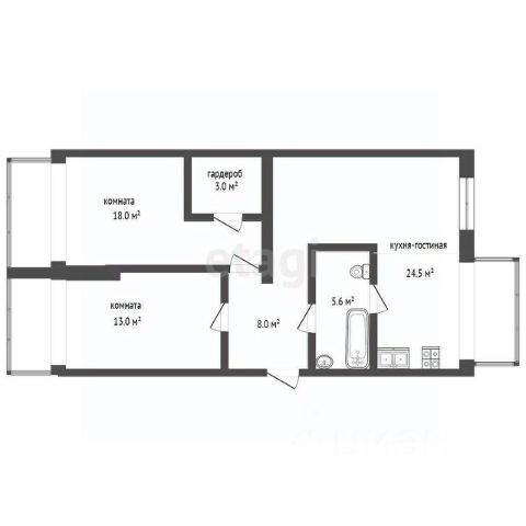 Площадь - 72,1 м2: прихожая 8 м2, совмещенный санузел 5,6 м2, детская 13 м2, мастер-спальня 18 м2 с гардеробных 3 м2, кухню-гостиную 24,5 м2.