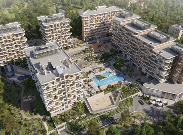 ROYALTA — жилой комплекс бизнес-класса в Ялте, жемчужине черноморского побережья. Уникальность квартала во внутреннем наполнении и акценте на комфорт резидентов. Расширенные террасы, собственный СПА и фитнес-центры, ресторан, торговая галерея и аллея с краснокнижными растениями: всем этим каждый день смогут наслаждаться жители Роялты.Самая высокая точка резиденции - 70 м над уровнем моря. Воздух здесь особенно свеж, а на набережную, старый город и склоны открываются захватывающие виды. Это тихий зеленый район, но всего 15 минут пешей прогулки и вот вы на центральной набережной Ялты: рестораны, магазины и развлечения — к вашим услугам!