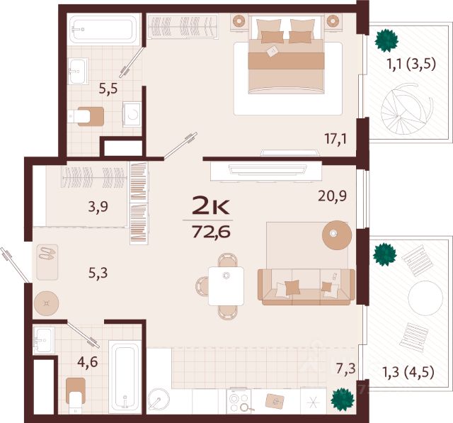 • Террасы: Возможность иметь собственное открытое пространство для отдыха, наслаждения видами и свежим воздухом.