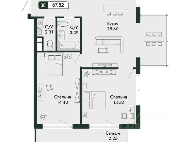 2-х комнатная квартира в новостройке, в комплексе бизнес-класса "Континент", в г. Алушта по улице Пуцатова. Квартира площадью 66,2 кв.м. расположена на 8 этаже 9 этажного монолитного здания. Срок сдачи объекта - IV квартал 2025 года. Планировка квартиры 56: - Прихожая - 9,5 м2 - 2 санузла - 1,4 + 3 м2 - Кухня-столовая- 16,9 м2 - Жилая комната - 20,4 м2 - Жилая комната - 13,1 м2 - Лоджия (без понижающего коэффициента/ с понижающим коэффициентом)- 3,8 /1,9 м2 - Панорамное остекление - Высота потолков 4,2 метра Жилой комплекс располагается в эксклюзивной локации курортного города - в самом зеленом и спокойном районе Алушты, рядом с природным заповедником. Тихий район в непосредственной близости до набережной и главных городских достопримечательностей. Вся необходимая для жизни и отдыха инфраструктура города в шаговой доступности: автобусная остановка 2 минуты, центр города 10 минут, школы и детские сады 5 минут, больница и поликлиника 7 минут, городская набережная 17 минут, рынок 5 минут! Удобная транспортная развязка, без ожиданий в пробках с данной локации Вы сможете легко путешествовать по всему Крыму! Строительство ведется по монолитно-кирпичной технологии из качественных и экологичных материалов. Квартира продается в черновой отделке, что позволит Вам воплотить самые смелые дизайнерские решения! Двухуровневый подземный паркинг на 37 авто. Во дворе детская и спортивная площадка. Приобретение по 214-ФЗ, через ЭСКРОУ-счет. Доступна ипотека, рассрочка. Инвестируйте в высокодоходную недвижимость. Сейчас вы можете купить объекты по самой низкой цене! Звоните, наш отдел продаж ответит на все вопросы!
