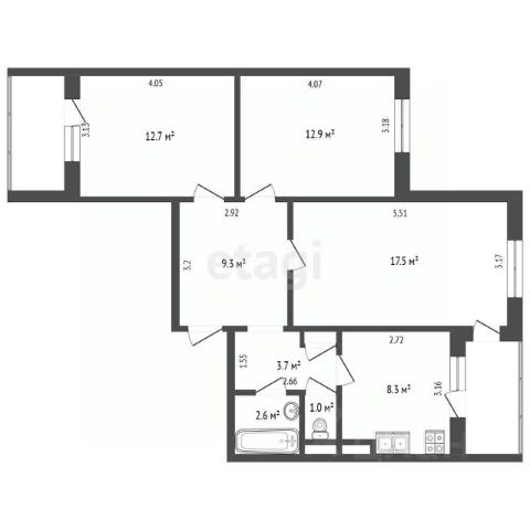 Балкон не застеклен: 1,41 кв.м., большой и широкий,