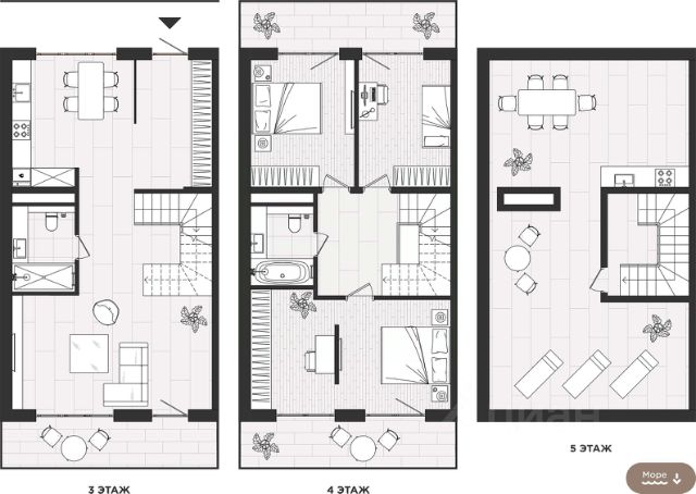 Большой балкон где можно пить чай и любоваться прекрасным видом!