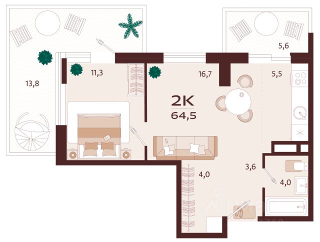 Продаётся 2-комнатная квартира в строящемся доме (Корпус 2), срок сдачи: II-кв. 2027, общей площадью 64.5 кв.м., на 9 этаже. Жилой комплекс бизнес-класса "РОЯЛТА" от застройщика "ГК ТОЧНО" в городе Ялта Республики Крым на улице Спендиарова.