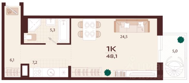 Продаётся 1-комнатная квартира в строящемся доме (Корпус 2), срок сдачи: II-кв. 2027, общей площадью 48.1 кв.м., на 9 этаже. Жилой комплекс бизнес-класса "РОЯЛТА" от застройщика "ГК ТОЧНО" в городе Ялта Республики Крым на улице Спендиарова.