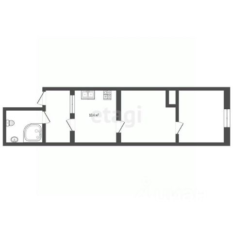 Квартира расположена на 3-м этаже трехэтажного дома, общая площадь студии 32 кв.м., жилая 28 кв.м.