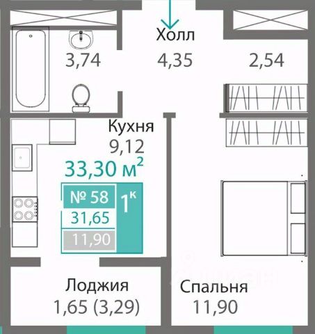 Продаётся 1-комнатная квартира в строящемся доме (Дом 2 (Секции Т2.1, Т2, К3КП1)), срок сдачи: I-кв. 2029, общей площадью 31.65 кв.м., на 3 этаже. Новый жилой комплекс "Благо" от застройщика "Монолит" расположен по адресу: Республика Крым, Симферопольский район, село Перово