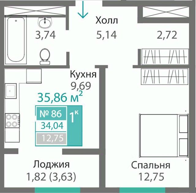 Продаётся 1-комнатная квартира в строящемся доме (Дом 2 (Секции Т2.1, Т2, К3КП1)), срок сдачи: I-кв. 2029, общей площадью 34.04 кв.м., на 8 этаже. Новый жилой комплекс "Благо" от застройщика "Монолит" расположен по адресу: Республика Крым, Симферопольский район, село Перово