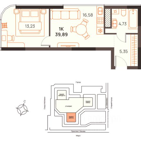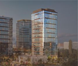 Комплекс представляет собой архитектурный ансамбль из трёх 23-этажных башен с панорамным остеклением, объединённых стилобатом с деловой, торговой и развлекательной инфраструктурой. Продуманная концепция формирует полноценную экосистему жизни, где все необходимые сценарии — от работы до отдыха — доступны внутри проекта.