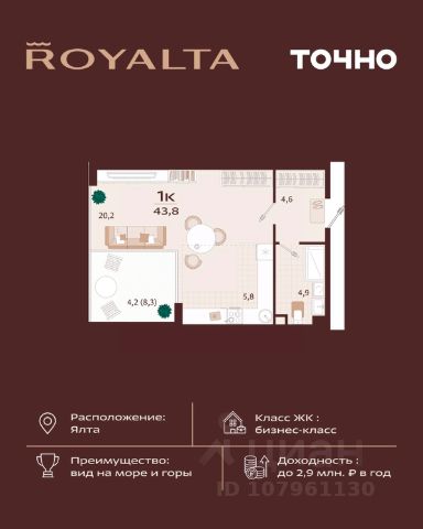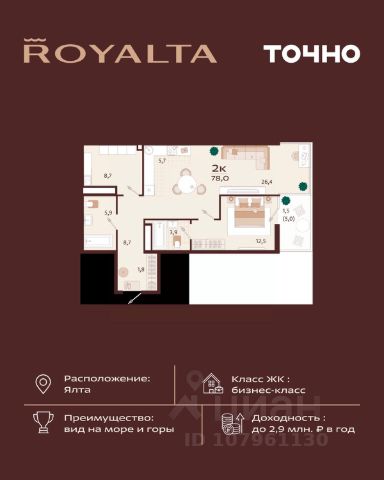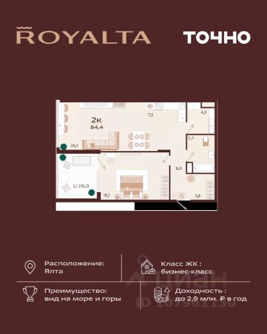 Продаётся студия-апартаменты в строящемся доме (Корпус 1), срок сдачи: I-кв. 2026, общей площадью 83 кв.м., на 12 этаже. Компания "Регион-Инвест Недвижимость" представляет новый комплекс апартаментов "Царский берег" в Крыму. Апарт-отель находится в нескольких десятках метров от знаменитой Царской тропы (Солнечная тропа), по которой император регулярно совершал пешие прогулки. Неподалёку, в Ливадии, располагалась императорская резиденция Романовых, а шикарные дачи российской элиты строились вдоль всего южного берега Крыма. Приобретая апартаменты комплекса "Царский берег", Вы становитесь не только обладателем элитной недвижимости, в Крыму, на берегу Черного моря, но и имеете возможность приобщится к части российской истории. Горы, море, солнце, мягкий климат делают это место идеальным, чтобы связать с ним свою жизнь.