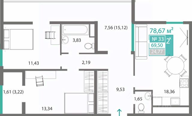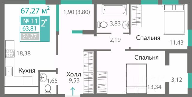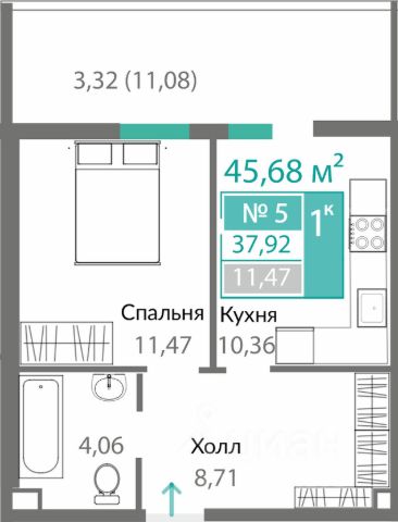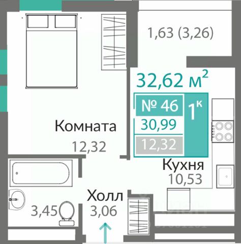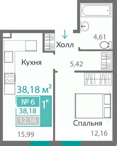 В продаже 1-к квартира без комиссии для покупателя!