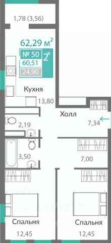 Продаётся 2-комнатная квартира в строящемся доме (ЭТАП 4, СЕКЦИИ Г1, Г2, Г3, Г4), срок сдачи: III-кв. 2028, общей площадью 51.23 кв.м., на 1 этаже. Новый жилой комплекс "Семейный квартал ПРОПОЛИС" от застройщика "Монолит" расположен по адресу: Республика Крым, Симферопольский район, с. Мирное, ул. Учительская
