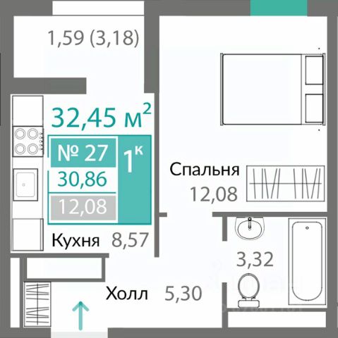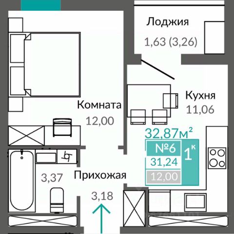 Продаётся 1-комнатная квартира в строящемся доме (5 этап (Секция Г9)), срок сдачи: I-кв. 2027, общей площадью 31.24 кв.м., на 2 этаже. Новый жилой квартал "Горизонты" от застройщика "Монолит" расположен по адресу Республика Крым, Симферополь, микрорайон Крымская роза.