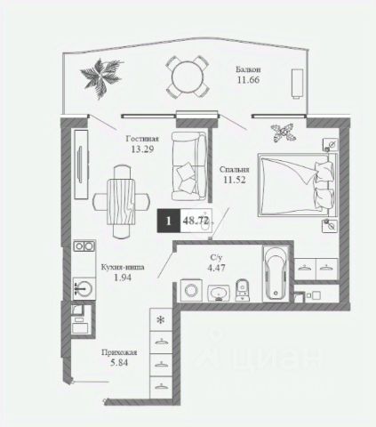 - Лоджия (без понижающего коэффициента/ с понижающим коэффициентом) - 3,9 /1,9 м2
