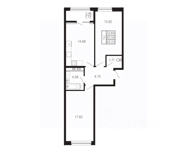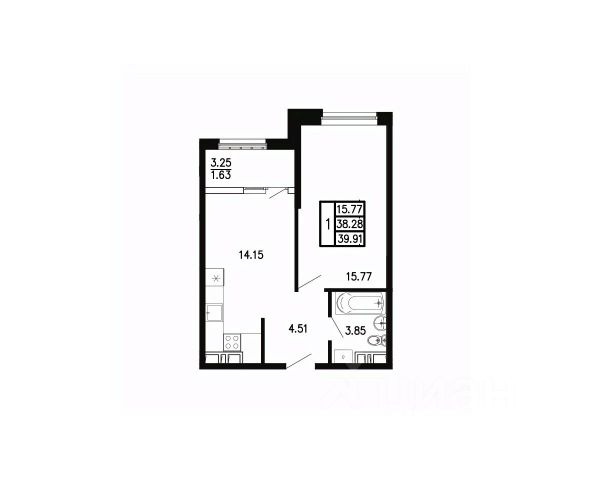 Уникальность конкретного апартамента Большая площадь — 47 м²