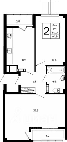 Продаётся 2-комнатная квартира в строящемся доме (Дом 3 (Секции Т3.3, К3КП2)), срок сдачи: I-кв. 2029, общей площадью 46 кв.м., на 2 этаже. Новый жилой комплекс "Благо" от застройщика "Монолит" расположен по адресу: Республика Крым, Симферопольский район, село Перово