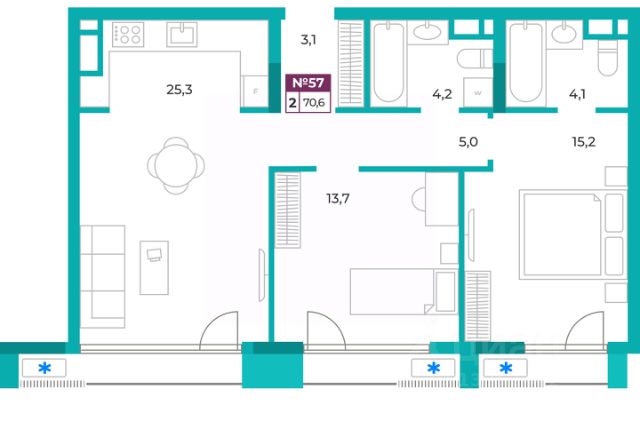3. Рассрочка от застройщика - до июня 2028 года! Первоначальный взнос от 30%.