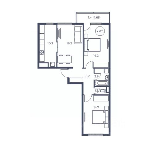 Продаётся 3-комнатная квартира в сданном доме (Дом 62), срок сдачи: III-кв. 2024, общей площадью 70.2 кв.м., на 2 этаже.