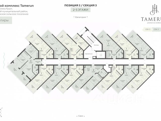 "Tamerun" - морская резиденция на Западном берегу Крыма, между городами Евпатория и Саки. Резиденция "Tamerun" представляет собой современный комплекс из четырёх корпусов высотой 9 и 12 этажей, гармонично вписанных в живописный ландшафт. Интерьеры выполнены в изысканном элегантном стиле с применением премиальных материалов — натурального мрамора, ценных пород дерева и высококачественной кожи. Просторные помещения наполнены естественным светом благодаря большим панорамным окнам, открывающим завораживающие виды на Черное море. Атмосфера резиденции пропитана уютом и гармонией, создавая идеальные условия для комфортной жизни и отдыха. Рядом с "Tamerun" находится Сасыкский заказник и самое крупное в Крыму солёное розовое озеро Сасык-Сиваш. На территории резиденции находится открытый бассейн с подогревом, окружённый шезлонгами и зоной отдыха, где можно наслаждаться теплыми лучами солнца и свежим морским бризом. Для любителей активного отдыха предусмотрен теннисный корт и фитнес-зал, оборудованный новейшими тренажёрами. В солнечной резиденции есть всё для жизни и интересного отдыха: собственный песчаный пляж и теннисный корт, бассейны с морской водой, рестораны и летнее кафе, зона СПА и фитнес-центр, общественно-деловые пространства и подземный паркинг. Профессиональная сервисная компания с международным опытом возьмёт на себя все операционные вопросы по управлению и эксплуатации, обеспечивая 5-звёздочный уровень обслуживания.