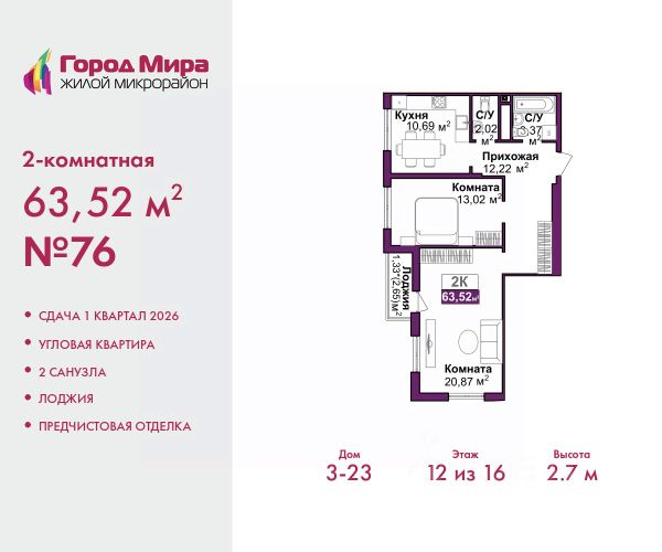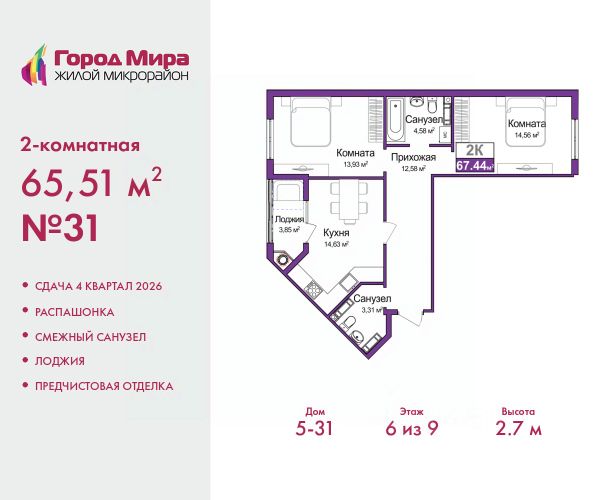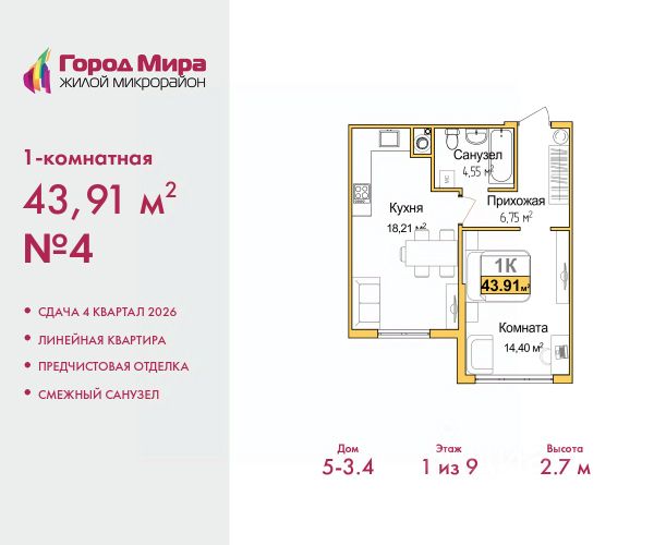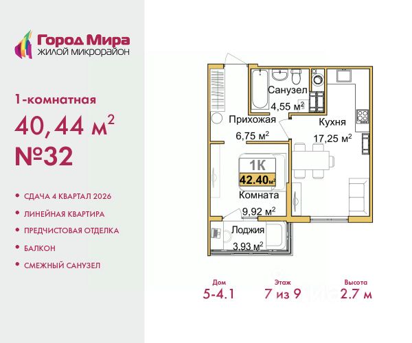 Продается 1-комн. квартира с предчистовой отделкой в ЖМ "Город Мира" на 7 этаже. Общая площадь: 36.48 кв.м., жилая: 15.57 кв.м., площадь кухни: 8.75 кв.м. Все окна выходят на одну сторону. В квартире одна лоджия, один совмещенный санузел. Высота потолков 2.7 м. Квартиры в ЖК "Город Мира" ваш комфорт начинается здесь! "Город Мира" это масштабный жилой комплекс, созданный для тех, кто ценит комфорт, безопасность и гармонию с природой. Здесь продумана каждая деталь: от удобной инфраструктуры до эргономичных планировок квартир. В 2024 году микрорайон "Город Мира" победил в номинации "Лучший экологический проект года в сфере строительства" по версии премии Crimea Urban Awards. Почему выбирают наш комплекс: - Зеленый оазис живите среди природы в черте города. - Всё под рукой 2 детских сада, магазины, фитнес, медицина. - Безопасность: закрытая территория с видеонаблюдением. Наши квартиры: - Просторные планировки с кладовыми. - Лоджии с остеклением. - Автономное отопление: платите только за реальное потребление. - Предчистовая отделка, включает стяжку пола, без штукатурки стен. - Консьерж-сервис и подземный паркинг. Инфраструктура комплекса: - Детские и спортивные площадки. - Зоны отдыха с беседками. - Фитнес-клубы и салоны красоты. - Будущая школа на территории, уже функционируют два детских сада. Выгодные условия покупки: - Ипотека от 5,5%, военная ипотека от 5,5%. - Рассрочка. - Материнский капитал на первоначальный взнос. Квартира находится в корпусе 5_31. Дом монолитный, одноподъездный, высотой 9 этажей. В подъезде 1 грузовой лифт. Окончание строительства - 4 квартал 2026 года. Оформление сделки по договору долевого участия. #26doee Продается квартира в ипотеку в новостройке от застройщиков в Симферополе.